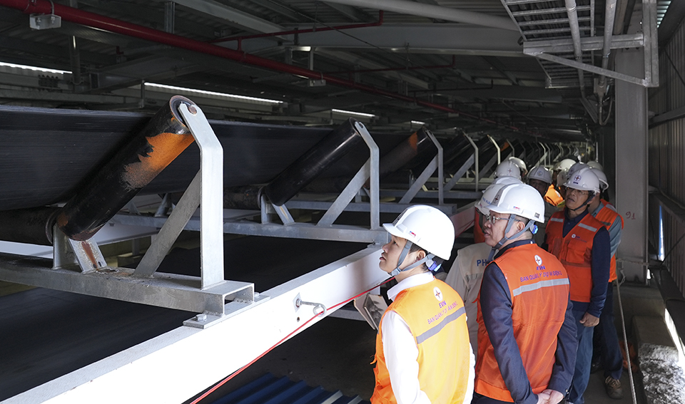 EVN Vice President Nguyen Tai Anh (left) directs Power Project Management Board No. 2 (EVNPMB2) and PECC1 to closely monitor and urge EPC contractor to accelerate progress, making up for delays caused by stormy and rainy weather toward the end of 2025.