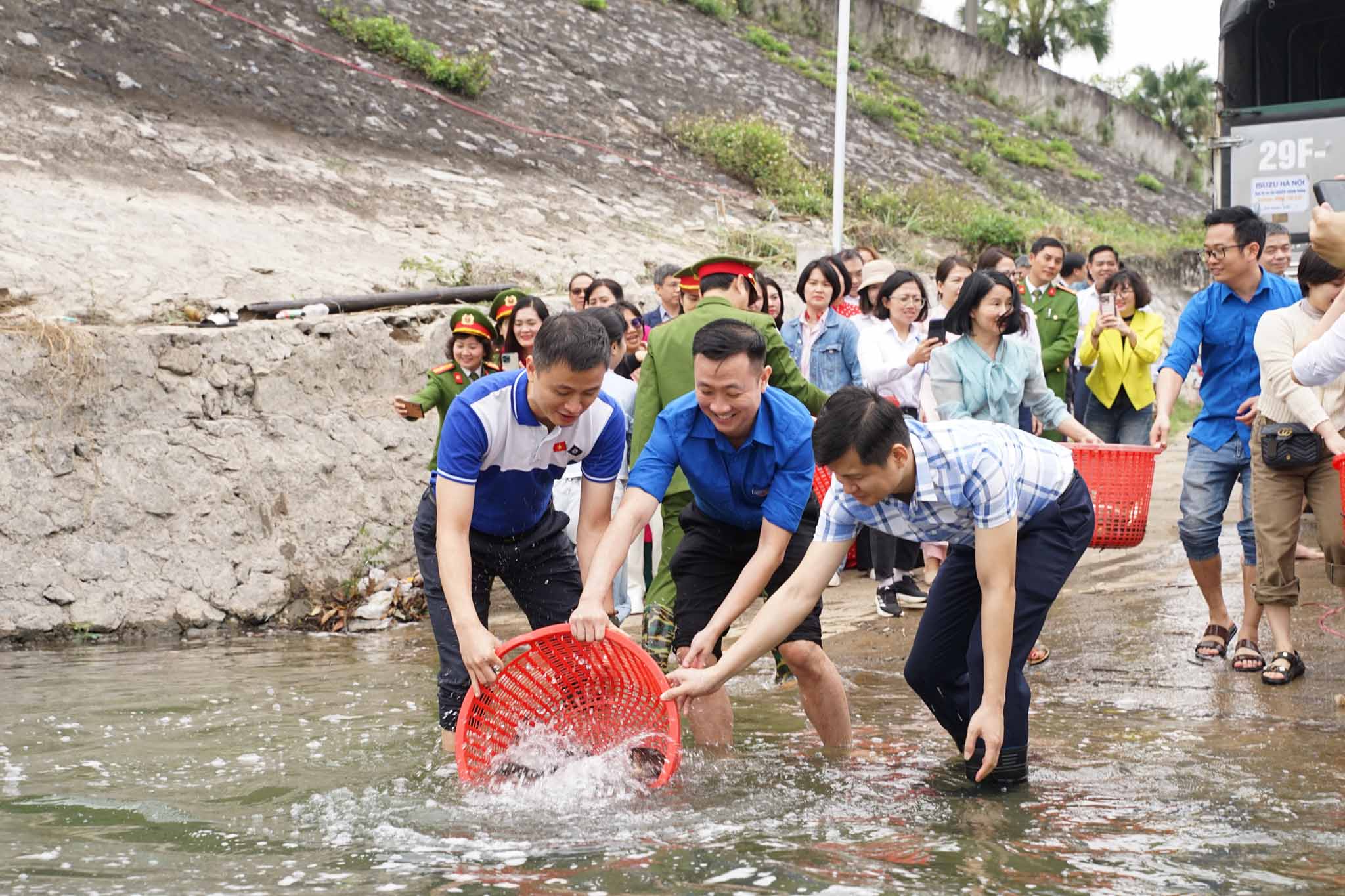 In the photo: EVN Youth Union releases approximately 2 tons of fish fingerlings into Hoa Binh Hydropower Reservoir (Phu Tho Province) to restore aquatic resources and balance ecosystem.