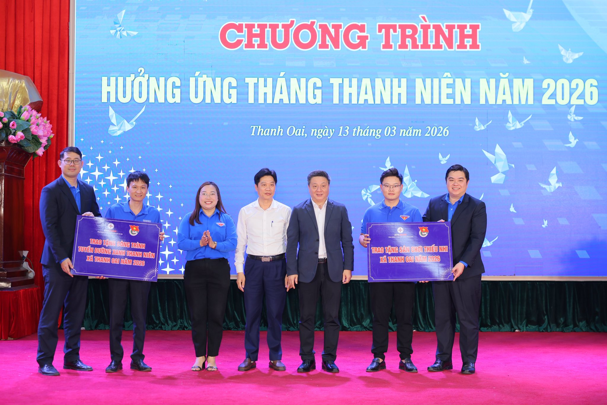 Youth Union of Hanoi Power Corporation (EVNHANOI) presents children’s playground and “Green Youth Road” project to People’s Committee of Thanh Oai Commune, Hanoi.