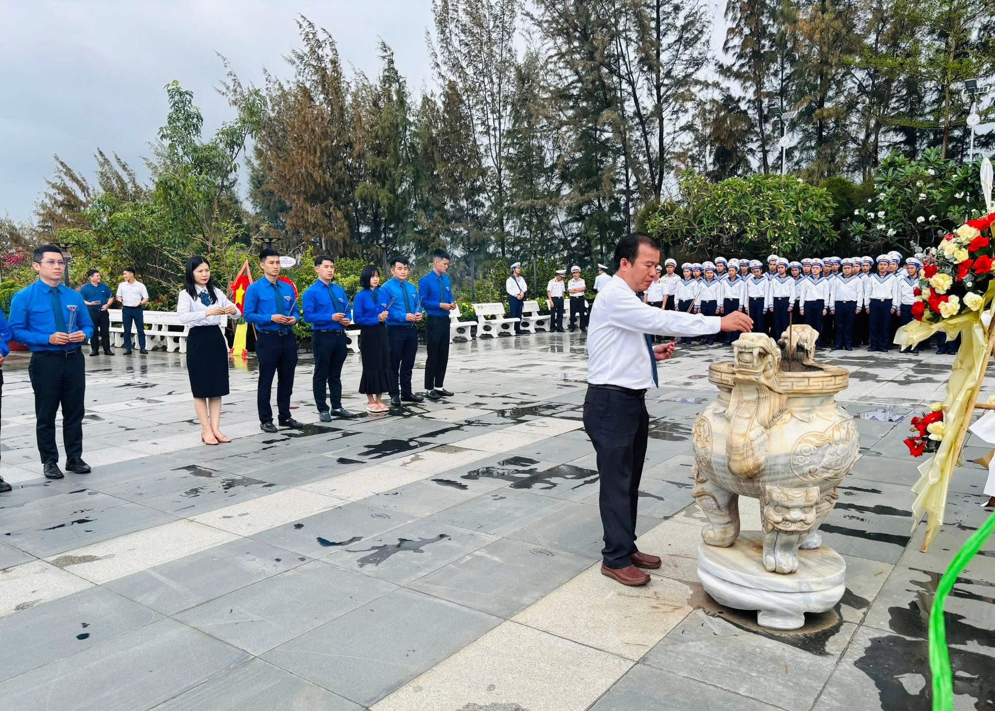At Gac Ma Soldiers Memorial Site (Khanh Hoa Province), Youth Union of Power Transmission Company No. 3 respectfully offers flowers and incense in memory of 64 officers and soldiers of Vietnam People’s Navy who heroically sacrificed their lives in 1988 Gac Ma Incident.