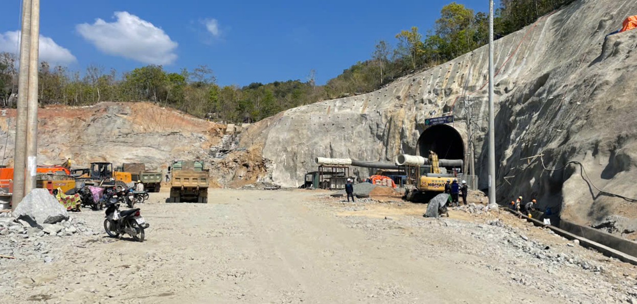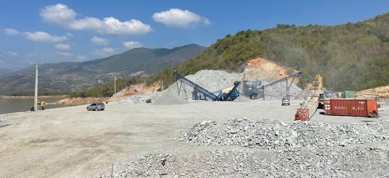 As of March 8, 2026, the contractor has completed the installation of the crushing plant equipment and is now carrying out material testing before commencing large-scale crushing and screening of aggregates for project supply. Accordingly, the excavated soil and rock will be transported to two crushing and screening plants to create crushed stone aggregate for road embankment construction, roadbeds in tunnels, and as material for spraying concrete to reinforce the slopes and tunnel arches. In the photo: Aggregate crushing and screening station No. 1.