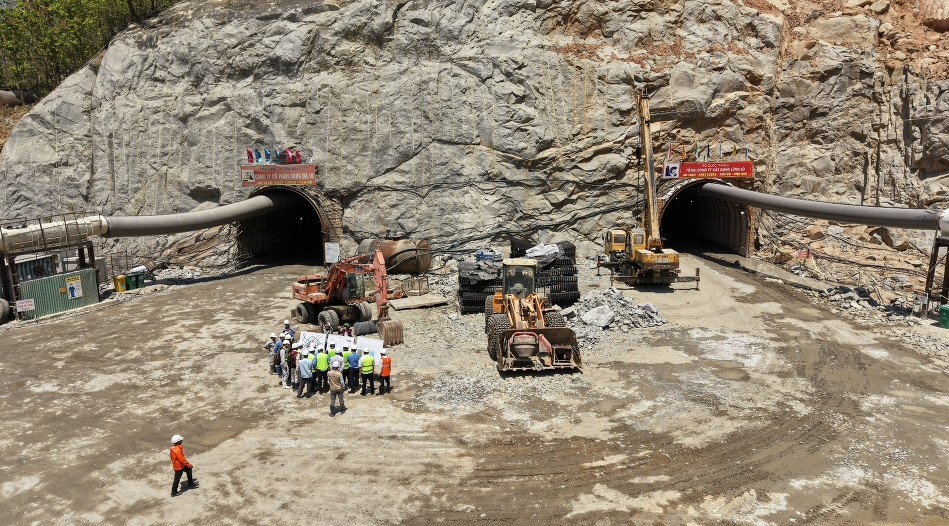 Following that, the delegation inspected the construction progress at the project tunnels. In the photo: Inspection team checking excavation and reinforcement works of underground power plant.