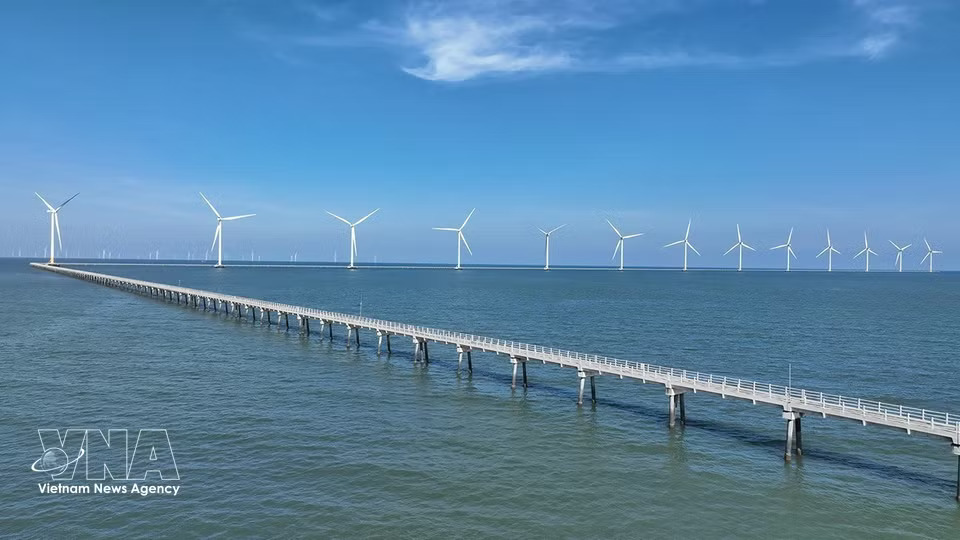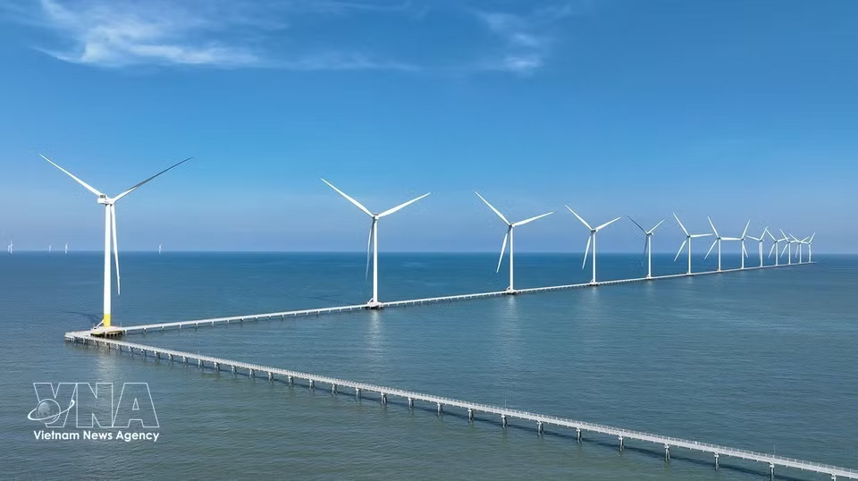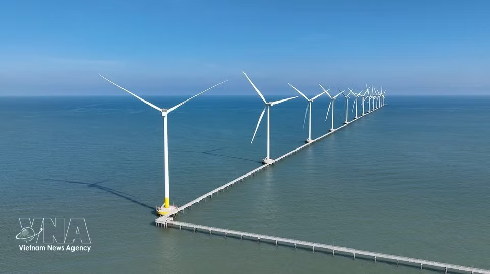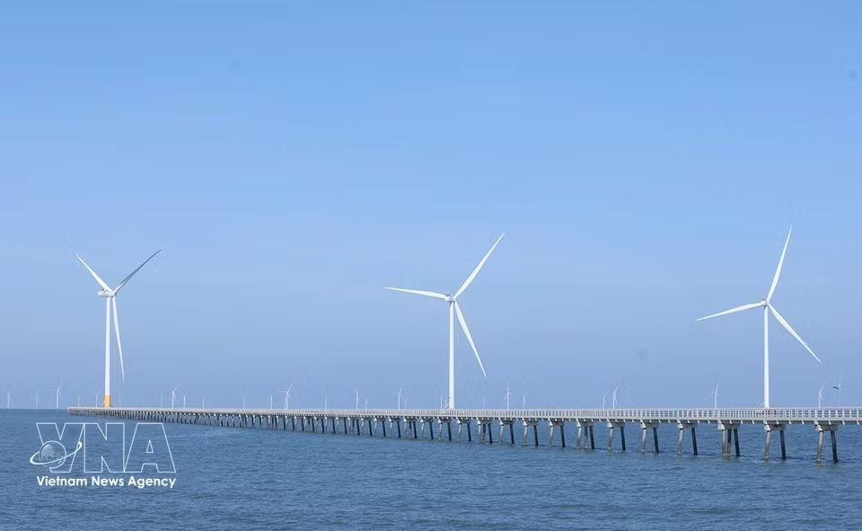 The wind turbine system at Hoa Binh 1 and 2 wind power plants in Vinh Hau commune, Ca Mau province plays a key role in supplying renewable energy. (Photo: Vu Sinh/VNA)