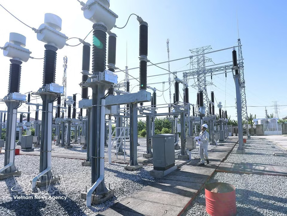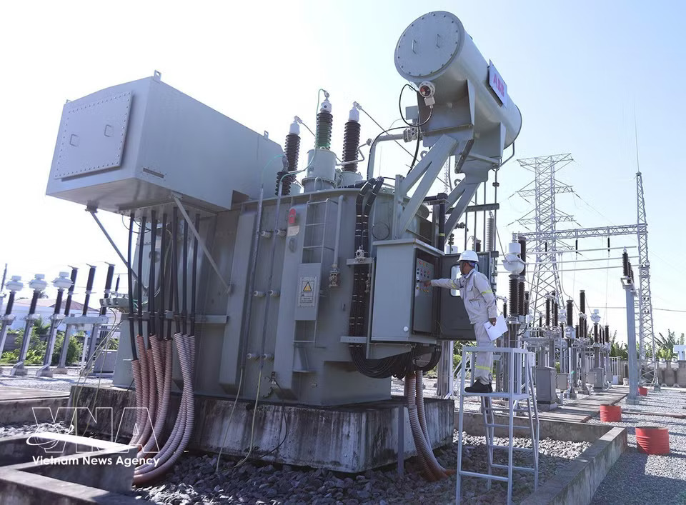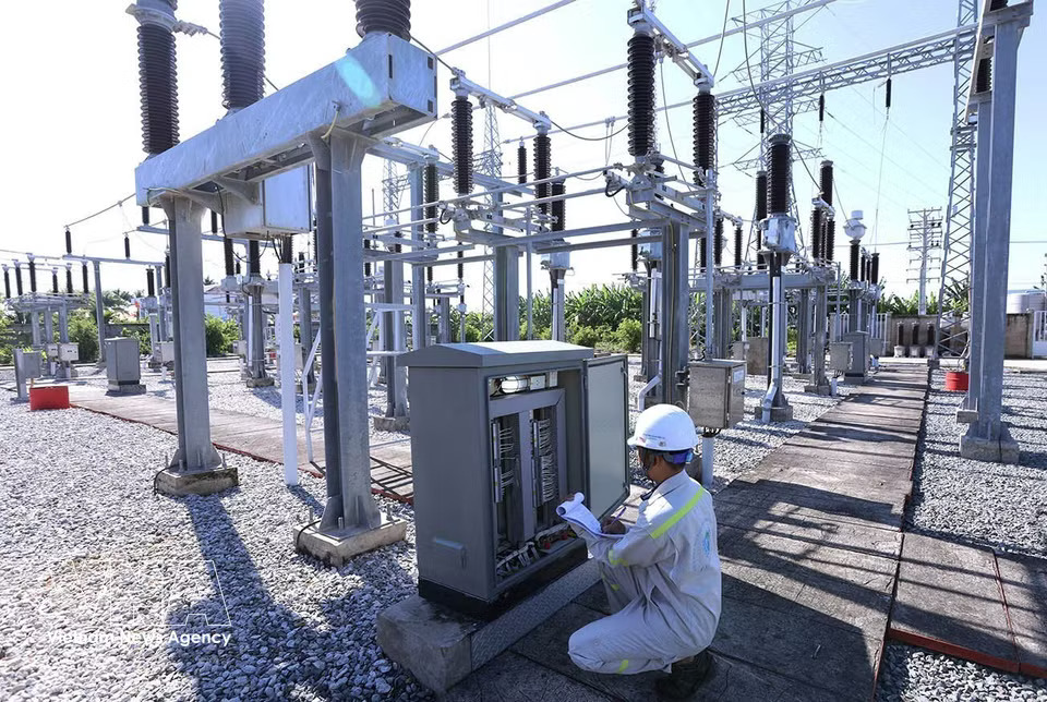 A technician monitors operations at a 110kV substation connected to the national grid at Hoa Binh 1 and 2 wind power plants in Vinh Hau commune, Ca Mau province. (Photo: Vu Sinh/VNA)