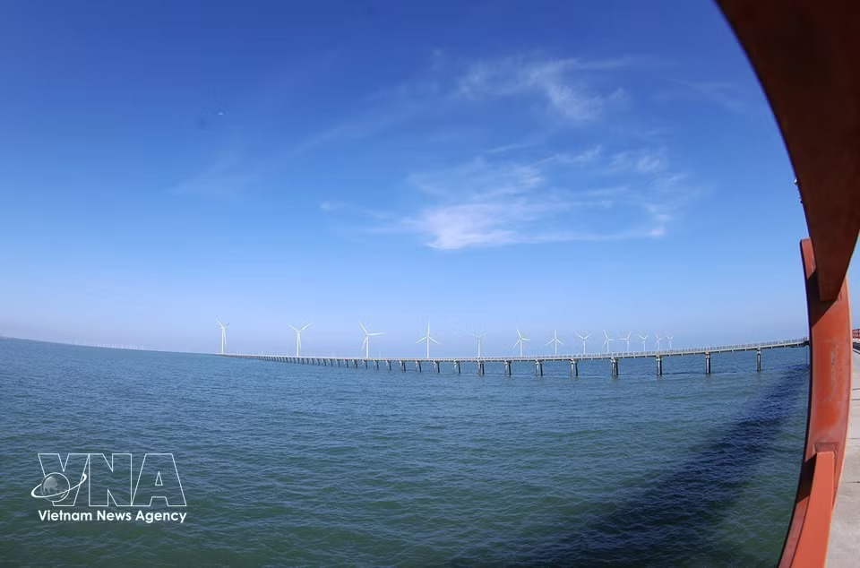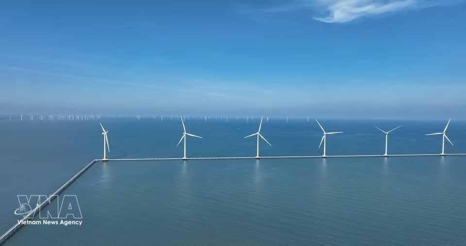 Hoa Binh 1 and 2 wind power plants in Vinh Hau commune, Ca Mau province, generate about 400 million kWh annually, contributing to national energy security. (Photo: Vu Sinh/VNA)