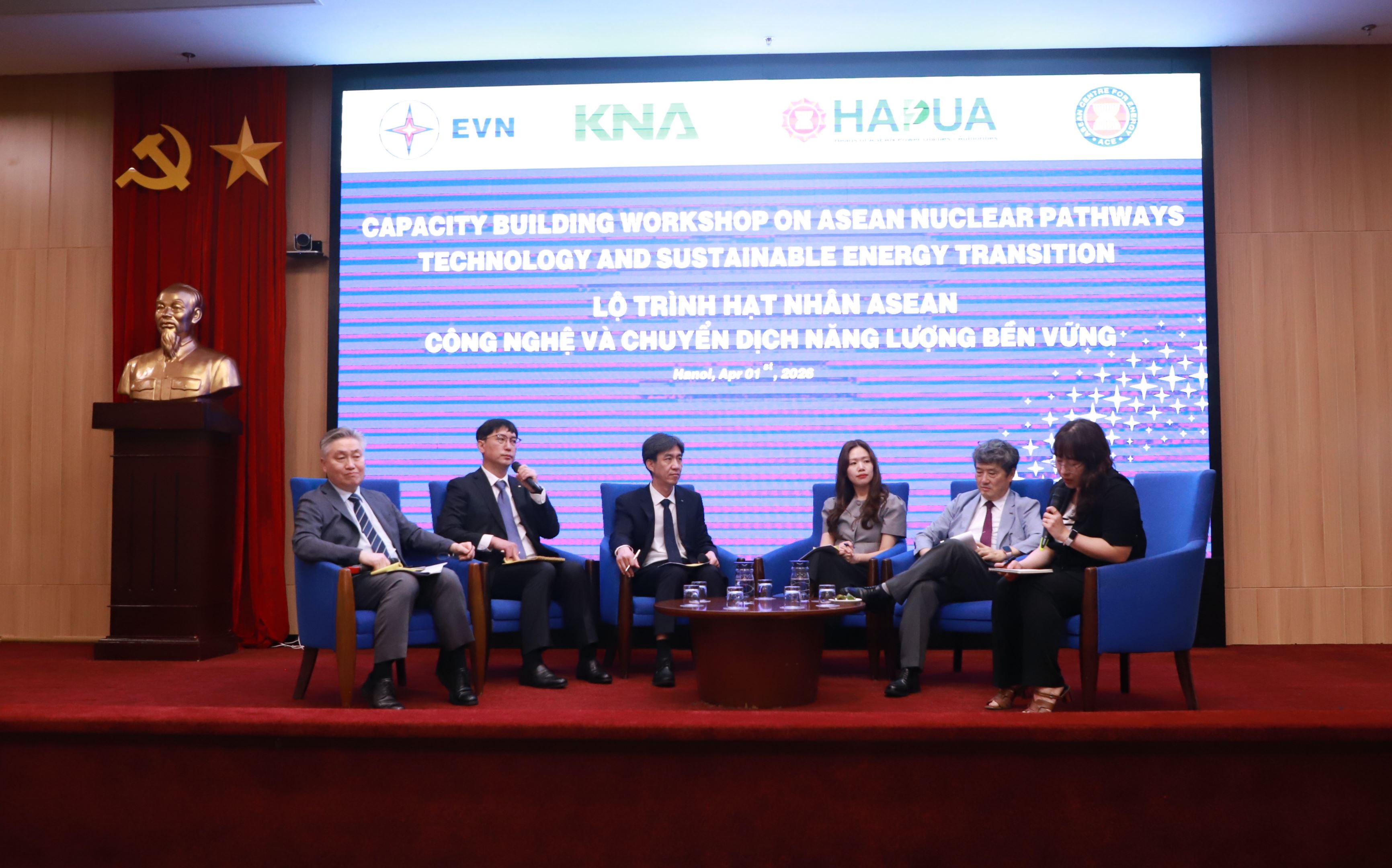 The training program was held in a hybrid format, both in person and online, with the participation of experts, speakers, representatives from professional organizations, training institutions, enterprises, and international partners from South Korea, Japan, the ASEAN Centre for Energy (ACE), the International Atomic Energy Agency (IAEA), and representatives of power sector units across ASEAN countries.