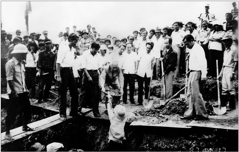 General Vo Nguyen Giap poured first batch of concrete for construction of Hue-Da Nang 110kV transmission line (1987)