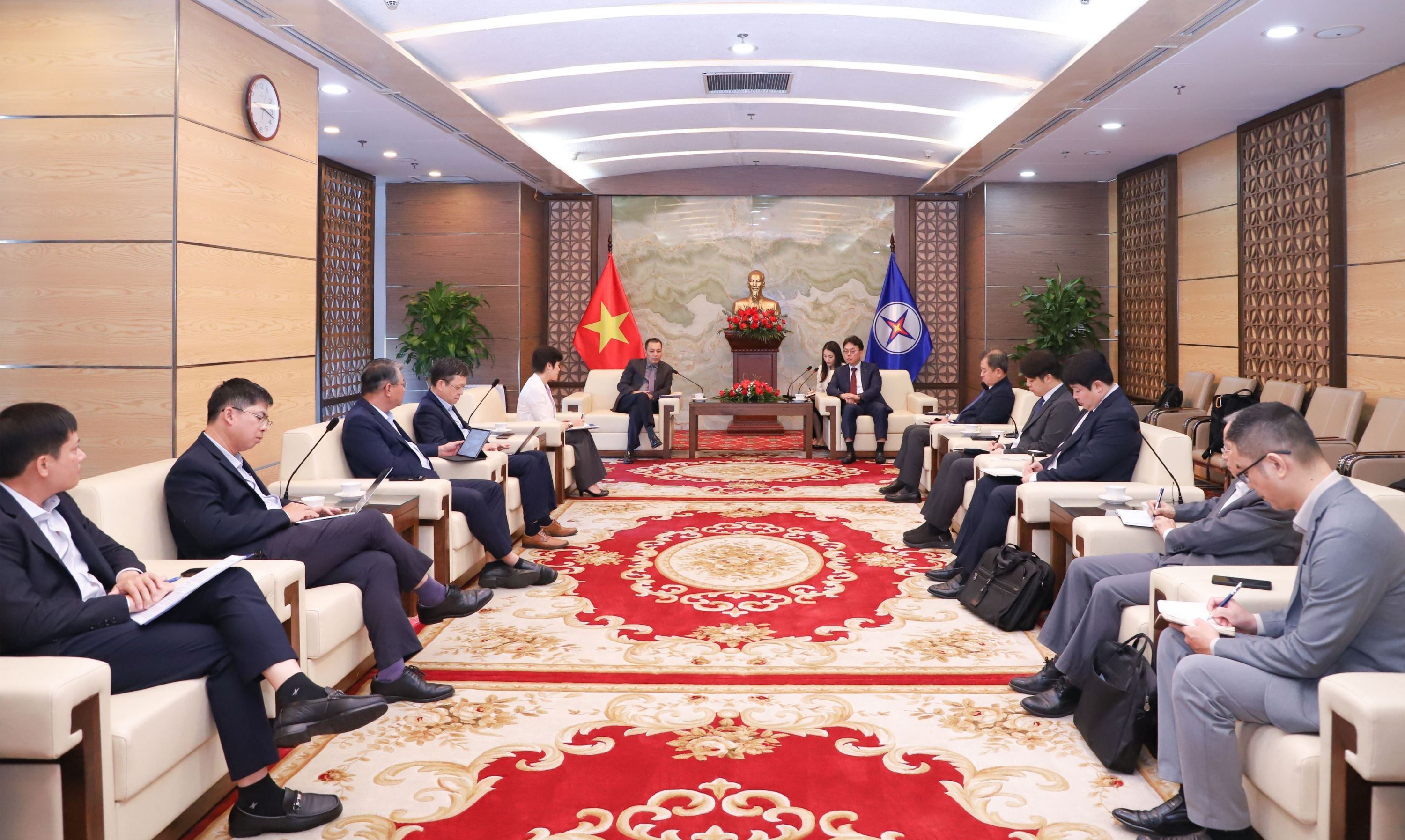 Mr. Yun Yo Han – Executive Vice President of Doosan Enerbility – and his delegation (right) during meeting at EVN
