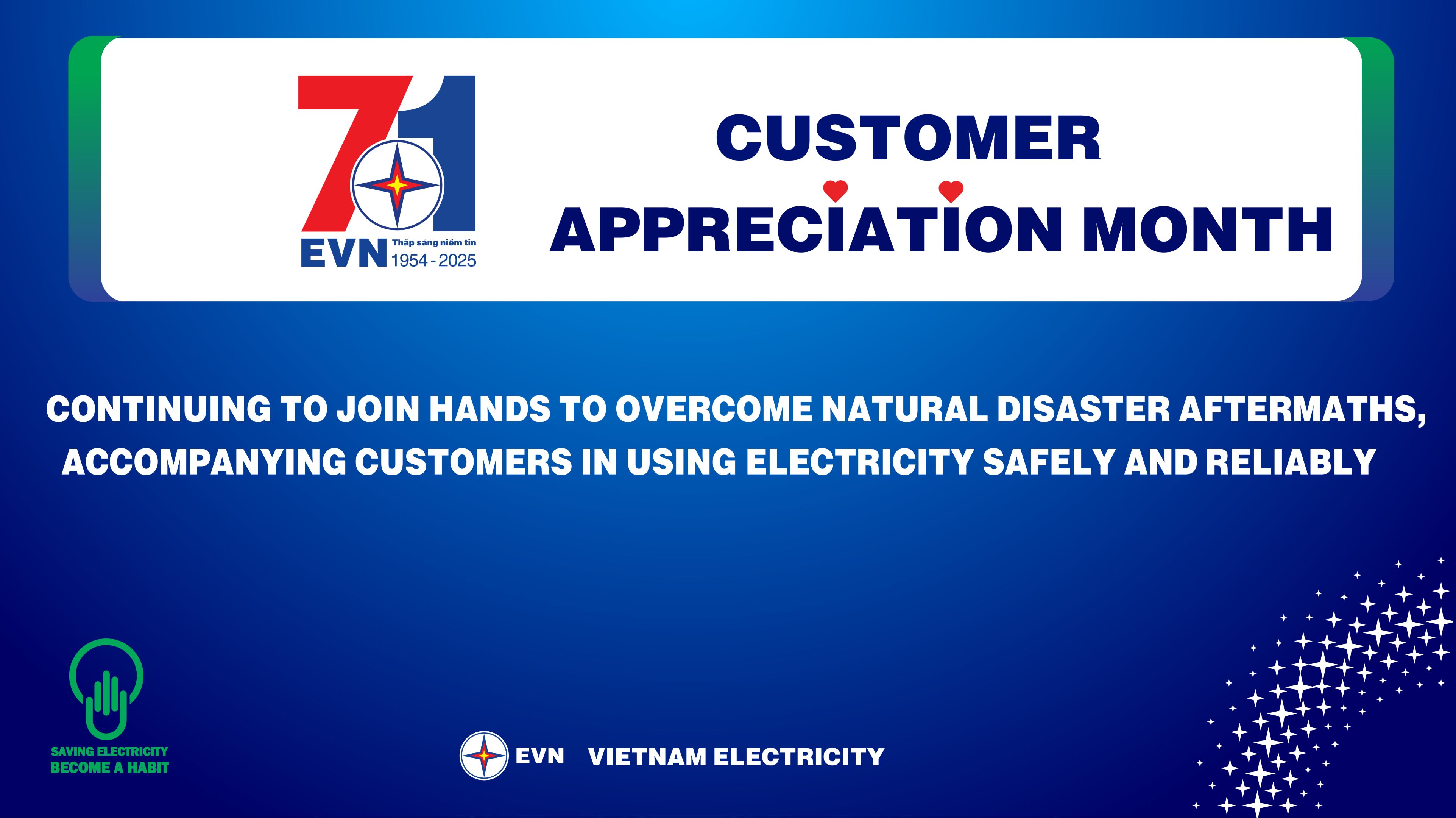 On the occasion of the 71st Anniversary of Vietnam’s Power Sector Tradition (21 December 1954 – 21 December 2025), Vietnam Electricity (EVN) is implementing the Customer Appreciation Month 2025 program under the theme “Continuing to join hands in overcoming natural disaster consequences and accompanying customers in using electricity safely and reliably.”