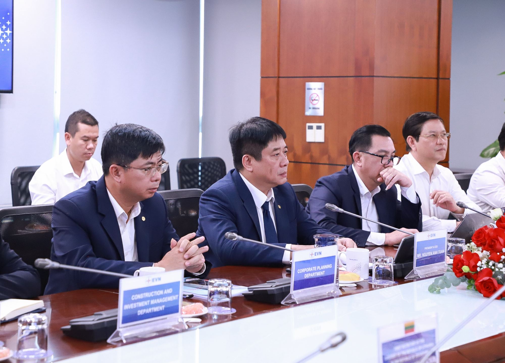 EVN President and CEO Nguyen Anh Tuan (second from left) at meeting