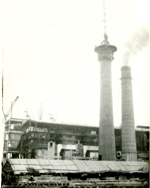 Viet Tri Power Plant, 1978 – During expansion phase, boilers No. 7 and No. 8, along with a second 60-meter-high smokestack, were installed. Photo: Tran Nguyen Hoi.