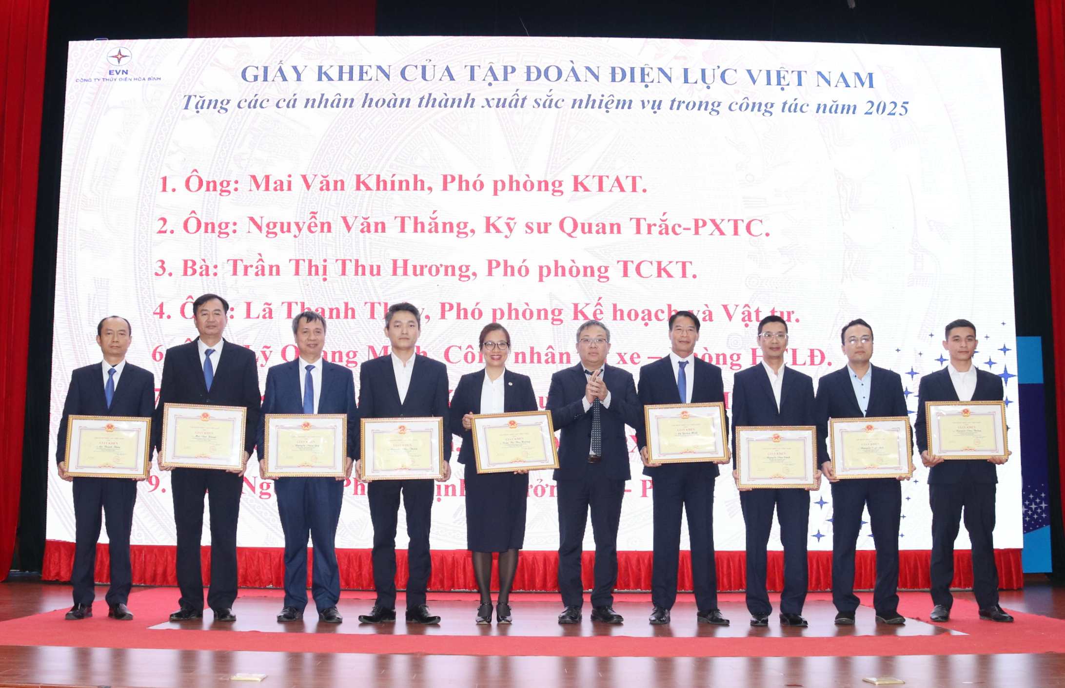 On this occasion, collectives and individuals with outstanding achievements in the 2025 performance were also awarded commendations from Vietnam Electricity and Hoa Binh Hydropower Company.