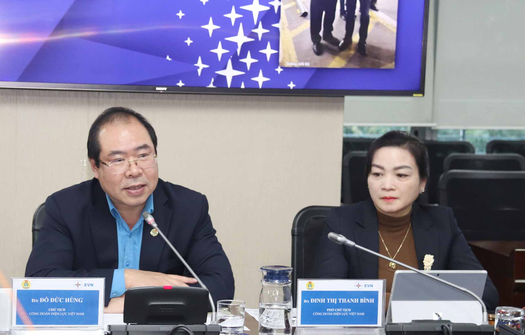 On the side of Vietnam Electricity (EVN), there was Mr. Pham Hong Phuong – Vice President of EVN. On the side of the Vietnam Electricity Trade Union (VETU), there was Mr. Do Duc Hung - VETU President, along with VETU Vice Presidents, and representatives from VETU's specialized departments.