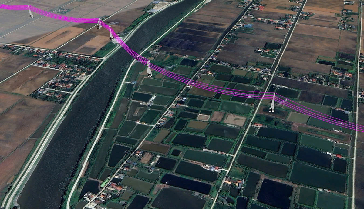Perspective layout of Nam Dinh - Hau Loc 220kV transmission line project