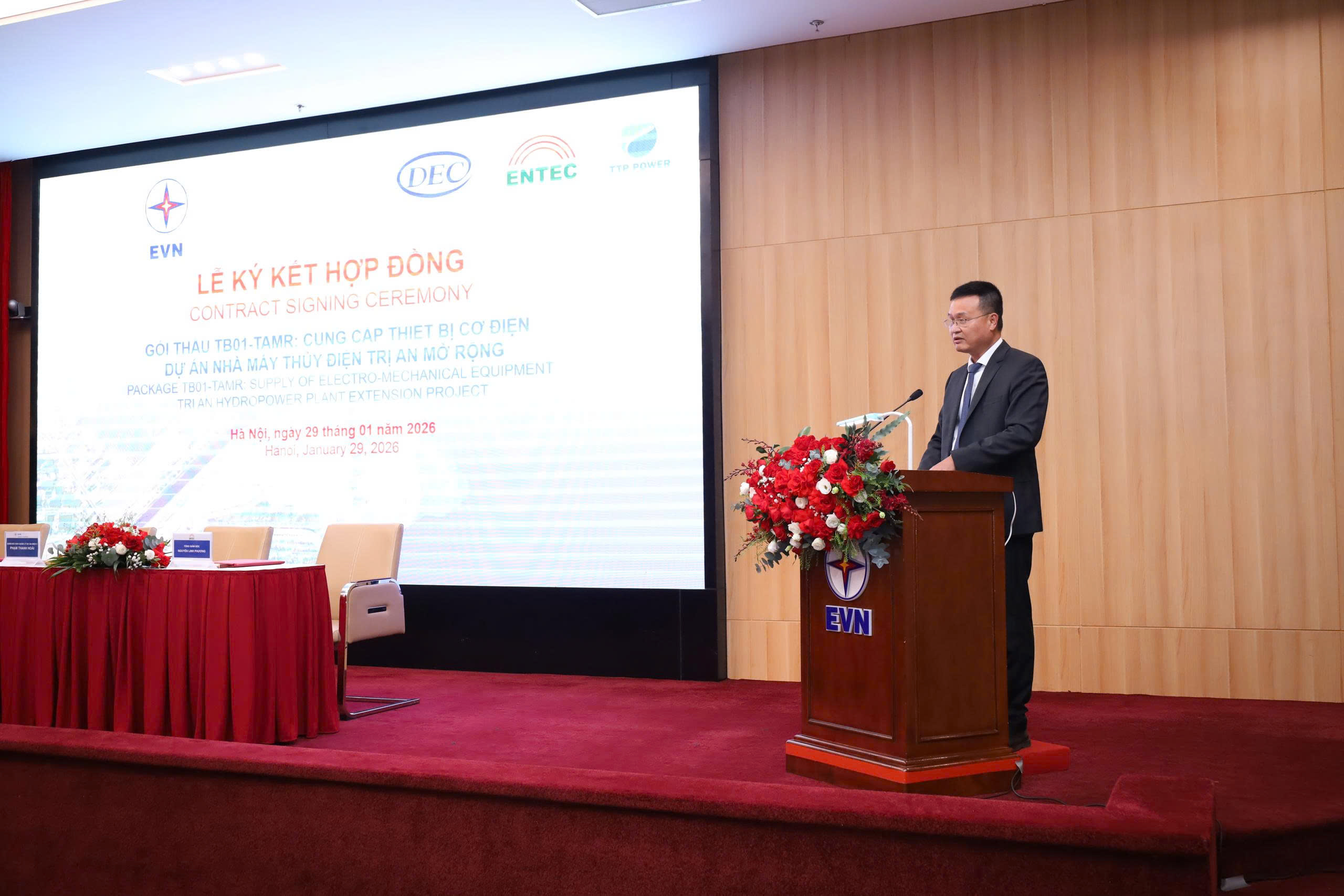 Attending the contract signing ceremony were representatives of EVN’s leadership, the lender Kreditanstalt für Wiederaufbau (KfW – German Development Bank), leaders of Power Project Management Board No. 3 (EVNPMB3), and representatives of the DEC–ENTEC–TTP Consortium.