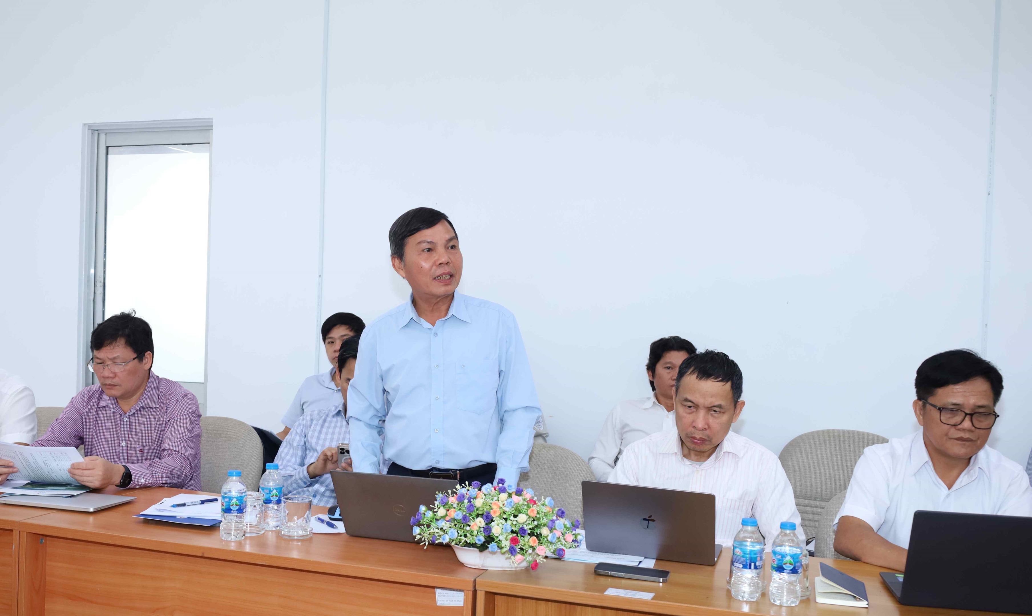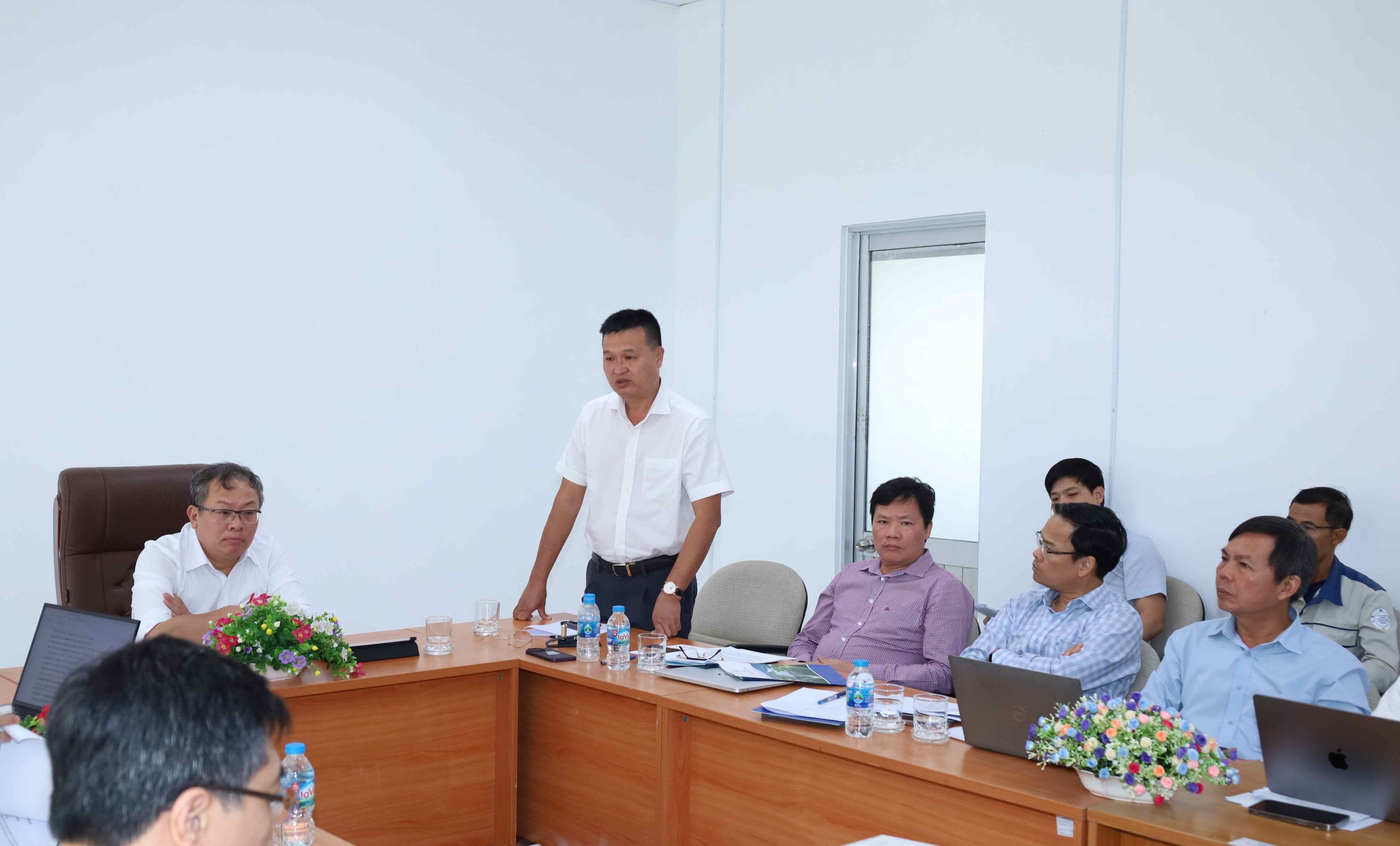 EVNPMB3 Director Pham Thanh Hoai (standing) reports to working delegation.